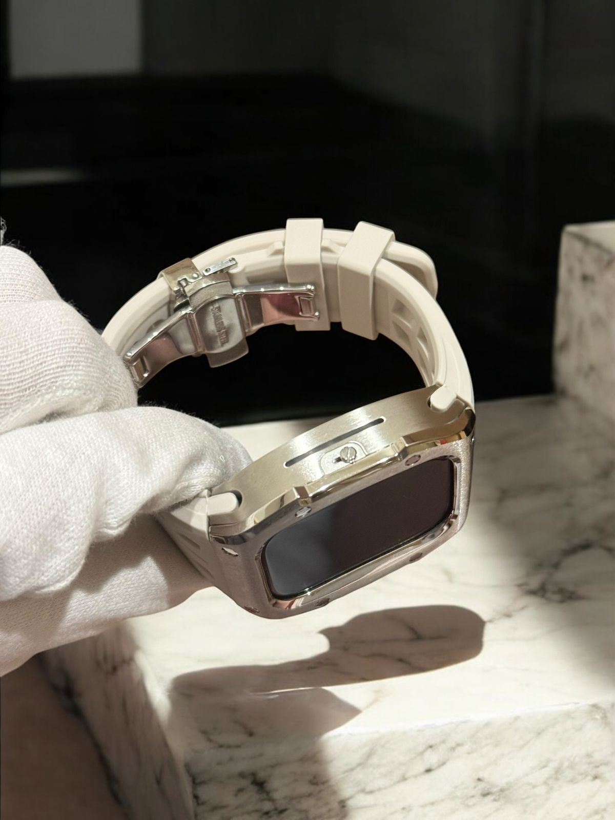 ゴールド×ホワイト 超 パブェ Apple Watch キラキラ カバー ケース ラバー バンド ベルト