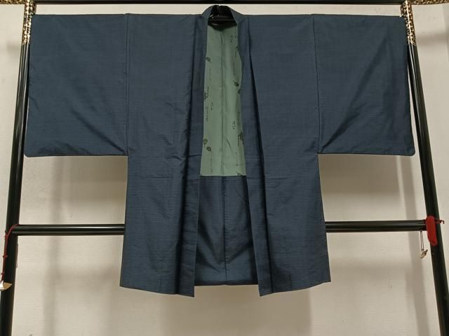 平和屋着物●男性 紬 アンサンブル 色無地 濃藍色 正絹 AABA5035np