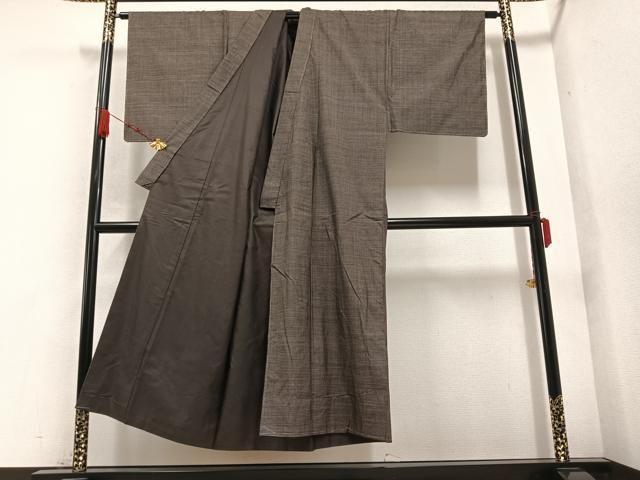 平和屋着物●男性 紬 アンサンブル 色無地 煤色 正絹 AABA9785ck
