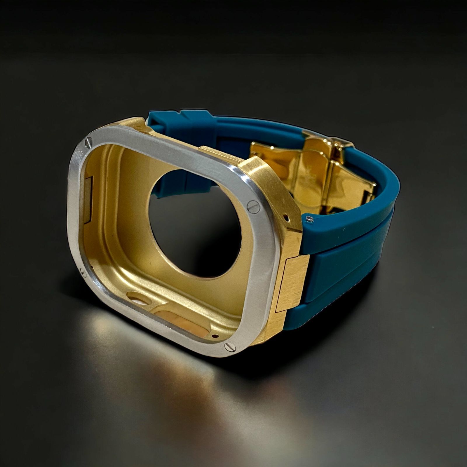 スモークブルー×シルバーゴールド 49mm apple watch ultraアップルウォッチラバーメタルカバーセット ウルトラ 49ミリ用 カスタム ultra2 MEDICALDB_JP