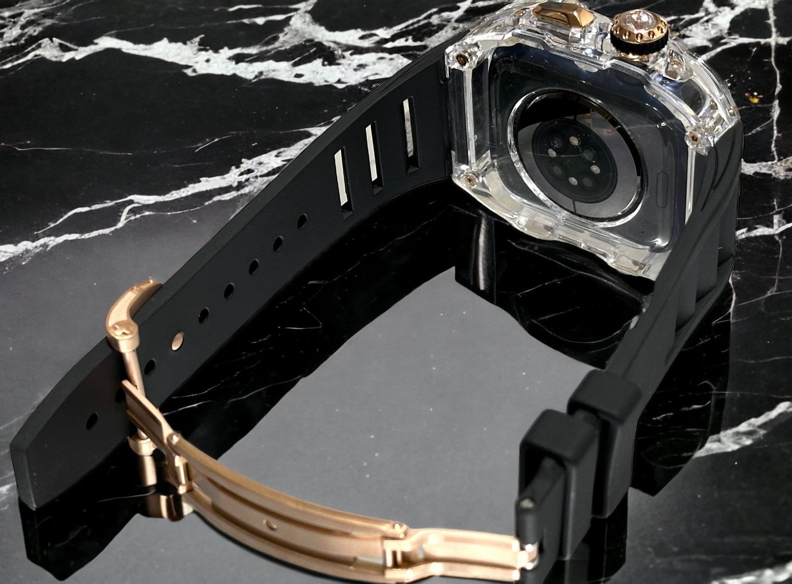 クリア-ブラック ローズ アップルウォッチバンド ラバーベルト カバー Apple Watch クリア ケース 44mm 45mm 4 5 6 7 8 9 se スポーツ メンズ レディース MEDICALDB_JP