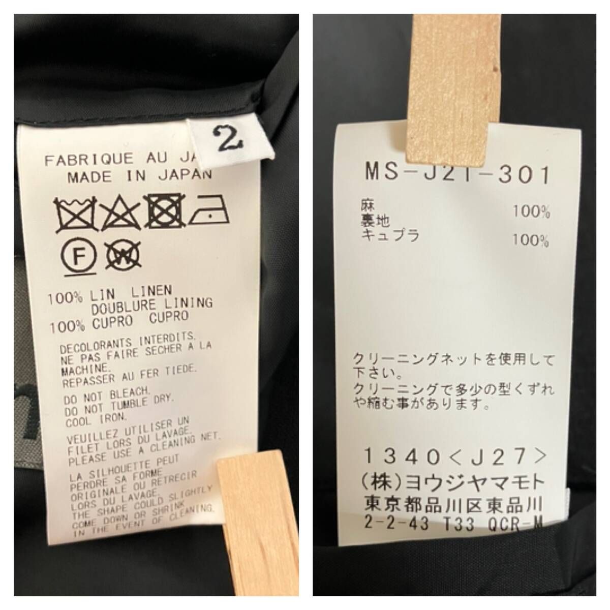 Y’s for men 40 LINEN 2B JKT MS-J21-301 ブラック サイズ2 ヨージヤマモト テーラード リネン 日本製 ワイズ MEDICALDB_JP