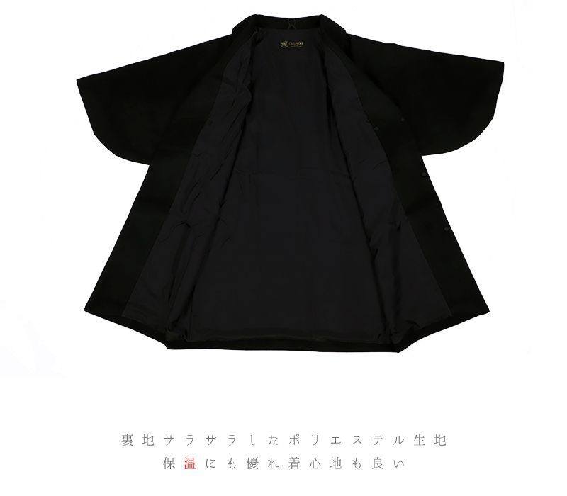 和装コート 黒地 ブラック カシミア カシミヤ混 ロング フリーサイズ へちま衿 筒袖 日本製 着物 道中着 長コート 長羽織 防寒 No.3-0497 MEDICALDB_JP