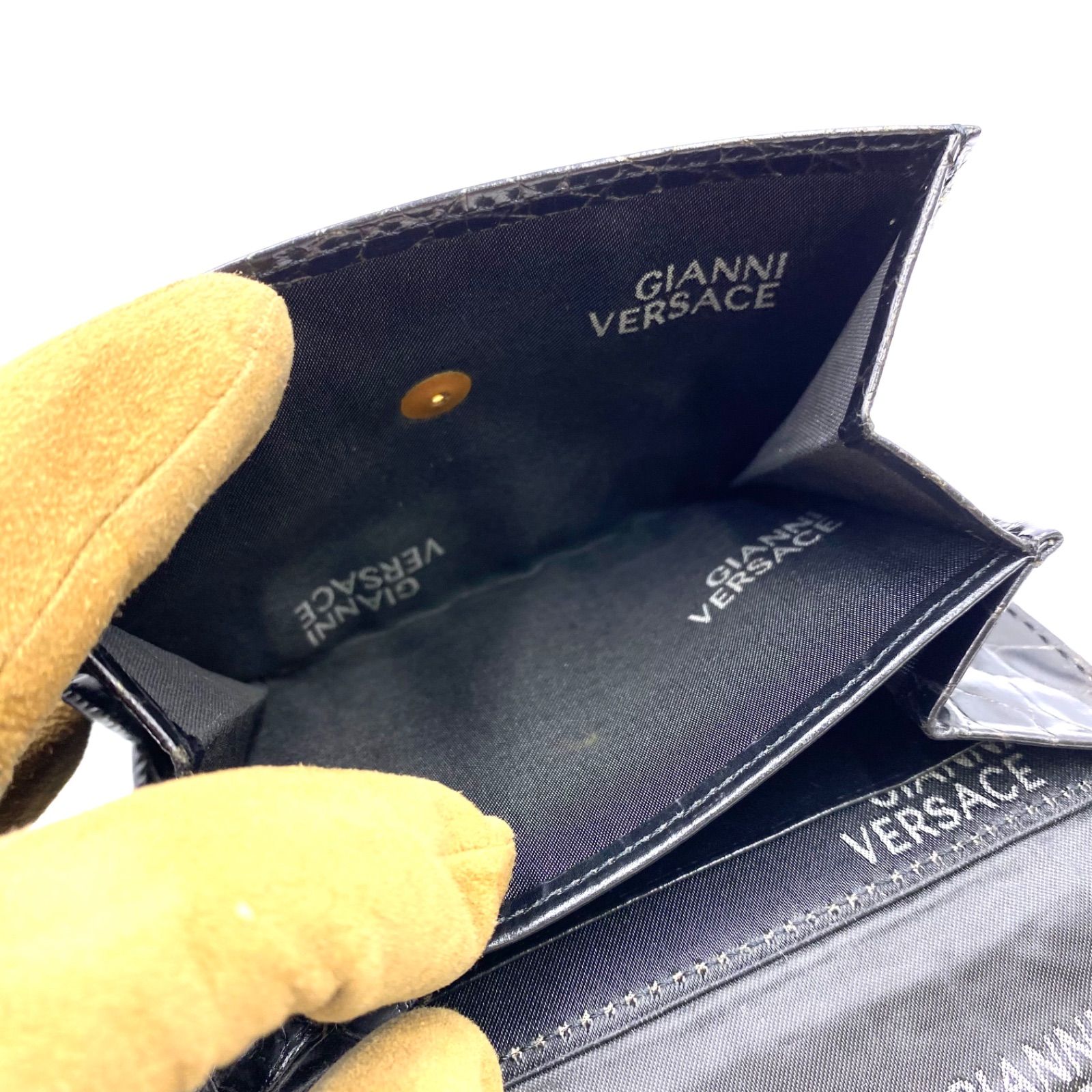 GIANNI VERSACE ジャンニヴェルサーチェ ヴェルサーチ 財布 ウォレット 二つ折り 三つ折り クロコ 型押し ブラック ゴールド MEDICALDB_JP