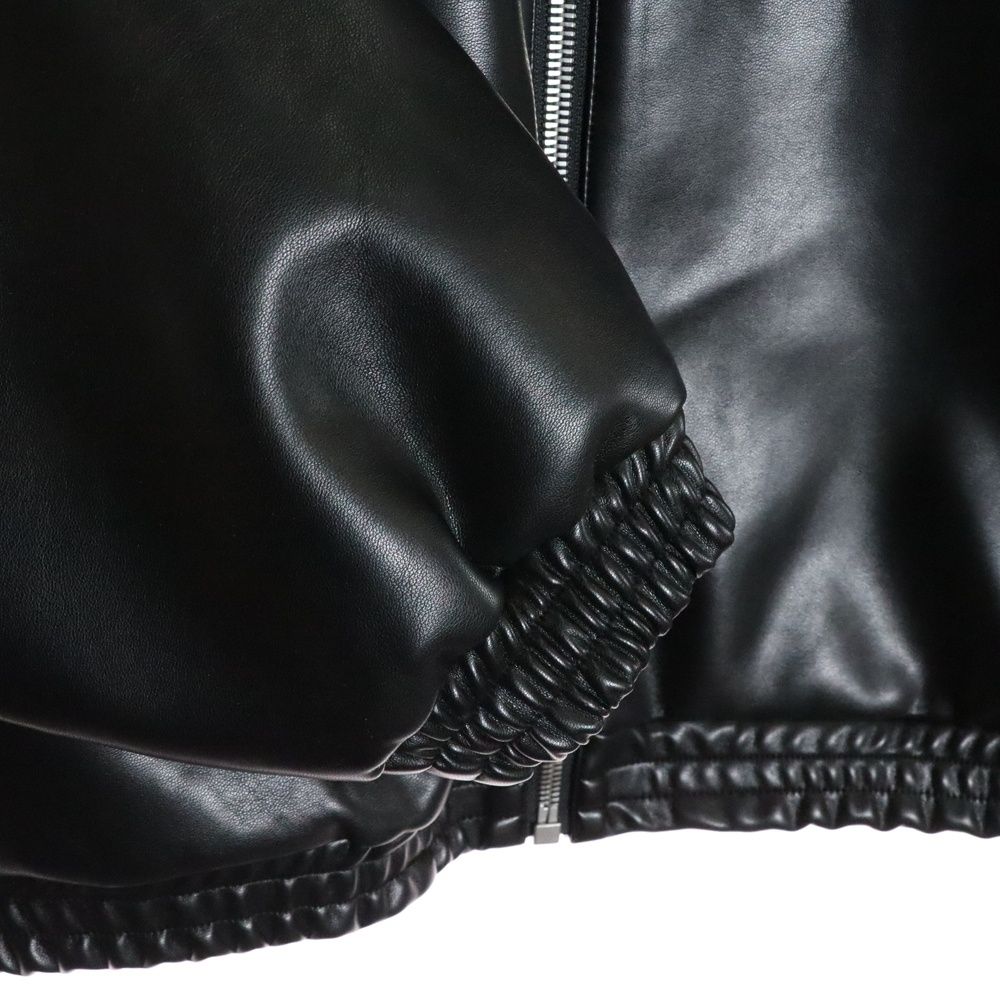 NO BRAND ノーブランド LEATHER TRACK JACKET レザートラックジャケット ハイネックジップアップブルゾン ブラック MEDICALDB_JP