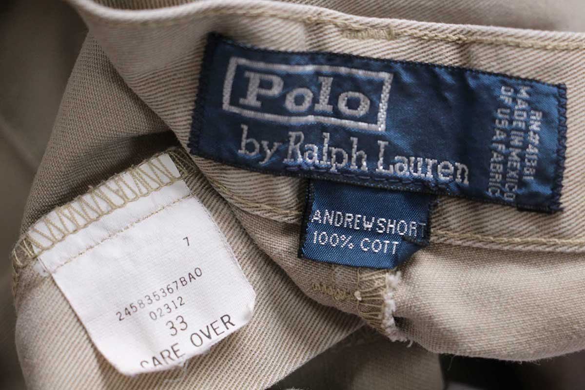 90s メキシコ製 ポロ ラルフローレン ANDREW SHORT ツータック コットン チノ ショートパンツ ベージュ 33 134 ショーツ オールド MEDICALDB_JP