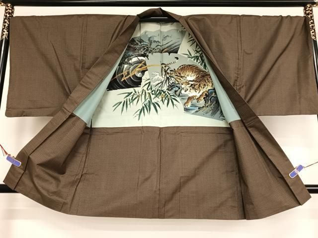 平和屋着物●男性 紬 アンサンブル 色無地 褐返し色 正絹 AABB0398ph