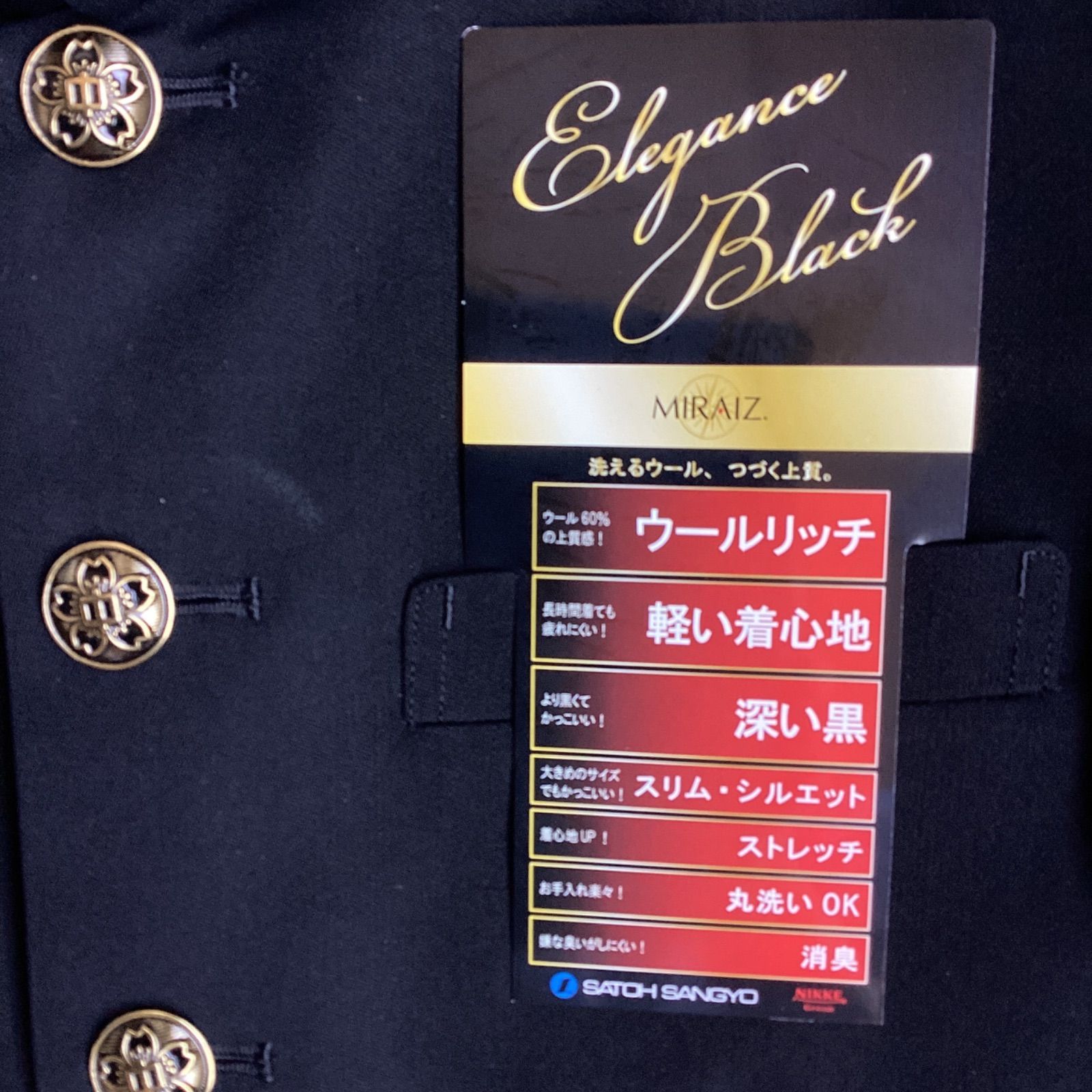 男子 学生服 185A|185AB|190A 襟カラー 1981-40050 学生 学ラン 詰襟 ♥品 標準型 ポリエステル50% 毛50% ニッケ学生服 NIKKE THE BLACK Green Mate ウォッシャブル