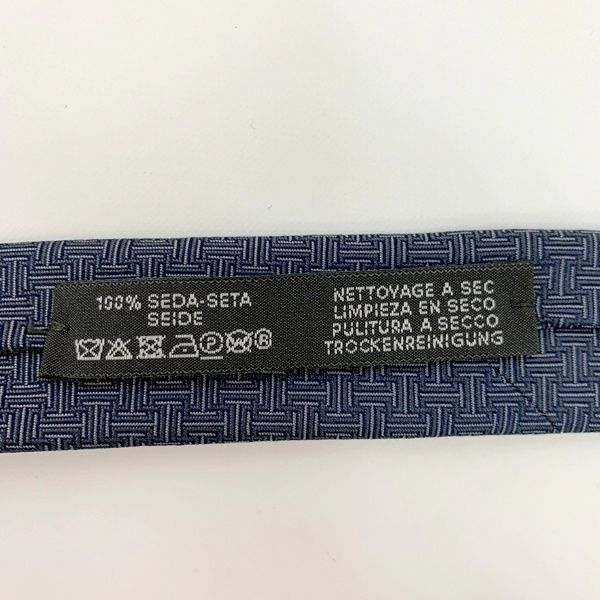 エルメス HERMES ネクタイ 総柄 9cm シルク ネイビー×ブルー 紺 青 グレー 手裏剣