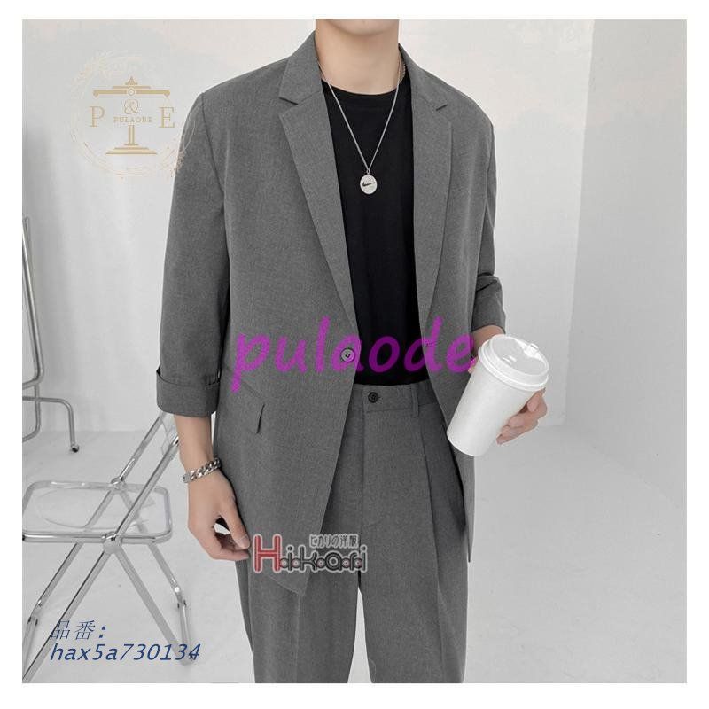 カジュアルスーツ メンズ 韓国 ファッション 七分袖 スーツ セットアップ ゆったり カジュアル 2ピース テーラード 春夏秋 ビジネス hax5a730134 MEDICALDB_JP