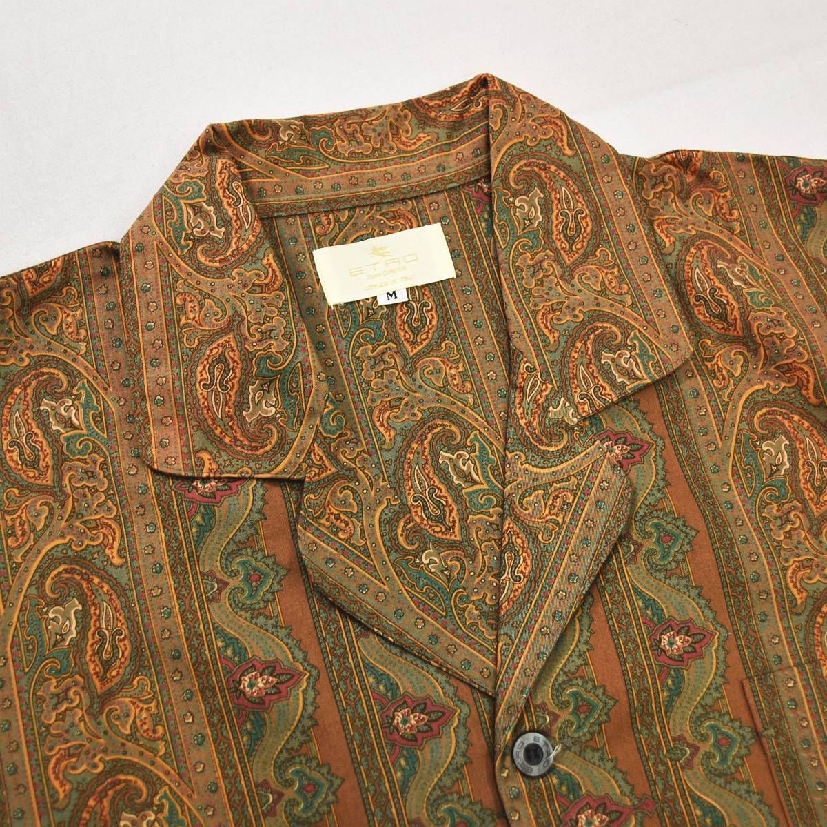 日本製 エトロ ホームコレクション ETRO HOME COLLECTION スリープ ウェア セットアップ 上下 開襟 オープンカラー パジャマ シャツ パンツ M ペイズリー柄 総柄 ミックスブラウン ラグジュアリー メンズ MEDICALDB_JP