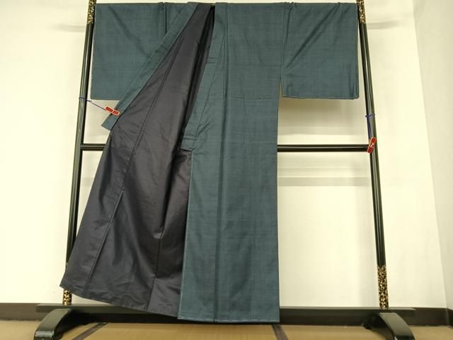 平和屋着物●男性 紬 アンサンブル 濃藍色 正絹 DAAW5540ud