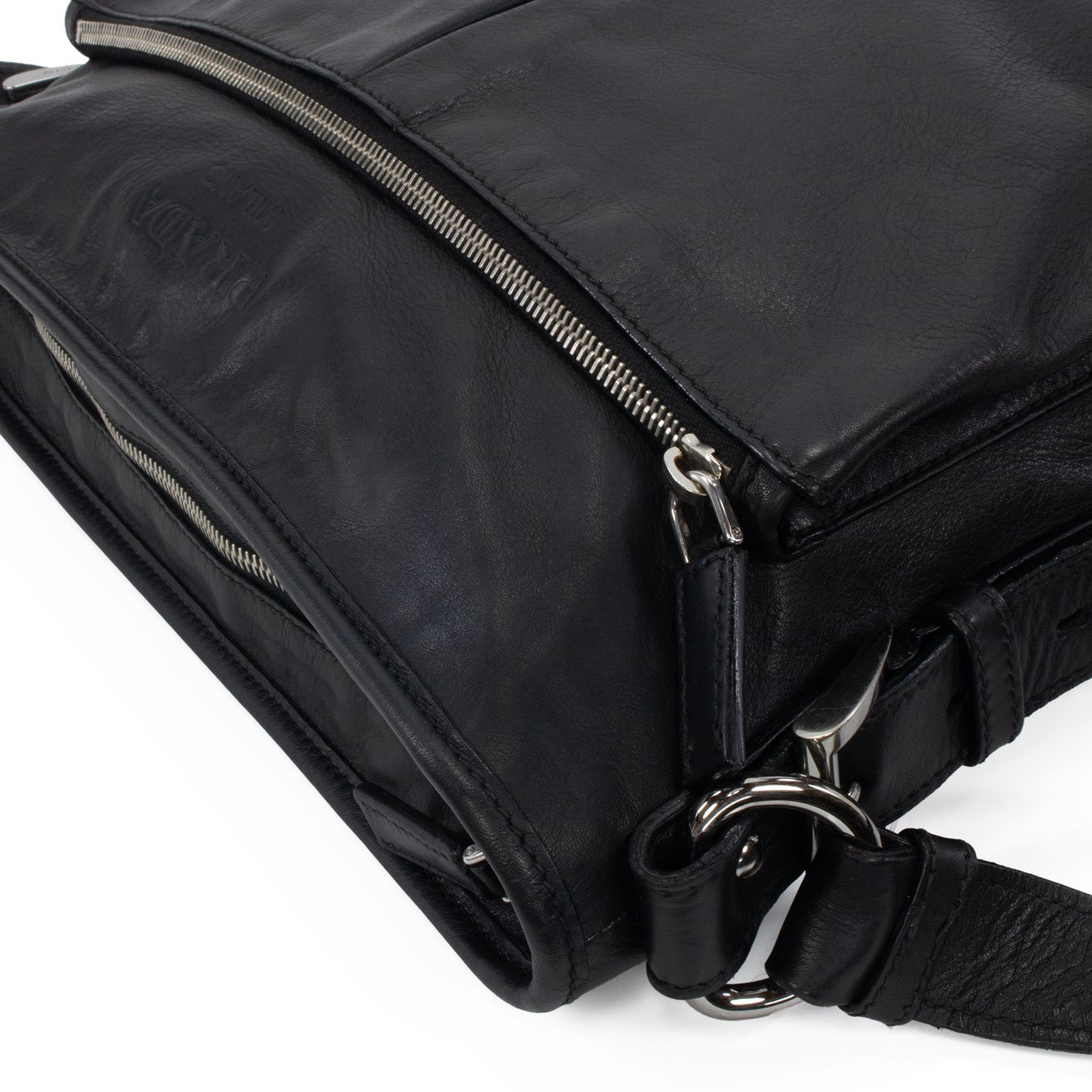 本物 送料無料 プラダ ショルダーバッグ クロスボディバッグ メッセンジャーバッグ メンズ レディース 黒 ブラック 珍しい モデル 肩掛け 斜め掛け A4対応 ロゴ マーク 本革 レザー シルバー金具 ハイブランド おしゃれ 鞄 バック A846 MEDICALDB_JP