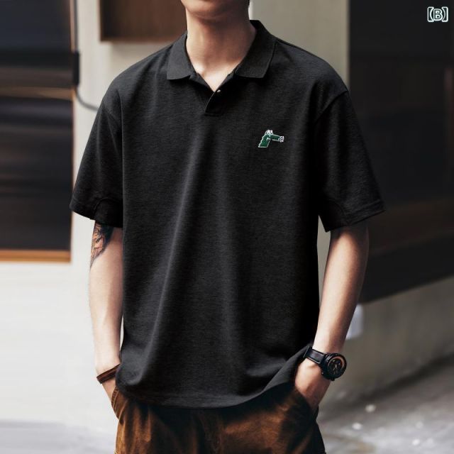 L メンズ ファッション 服 男性用 オシャレ シンプル 大人 かっこいい 大きいサイズ ストリート 紳士服 アメリカン ヘビーウェイト シンプル 刺繍 半袖 ポロシャツ 夏 レトロ カジュアル 半袖 MEDICALDB_JP