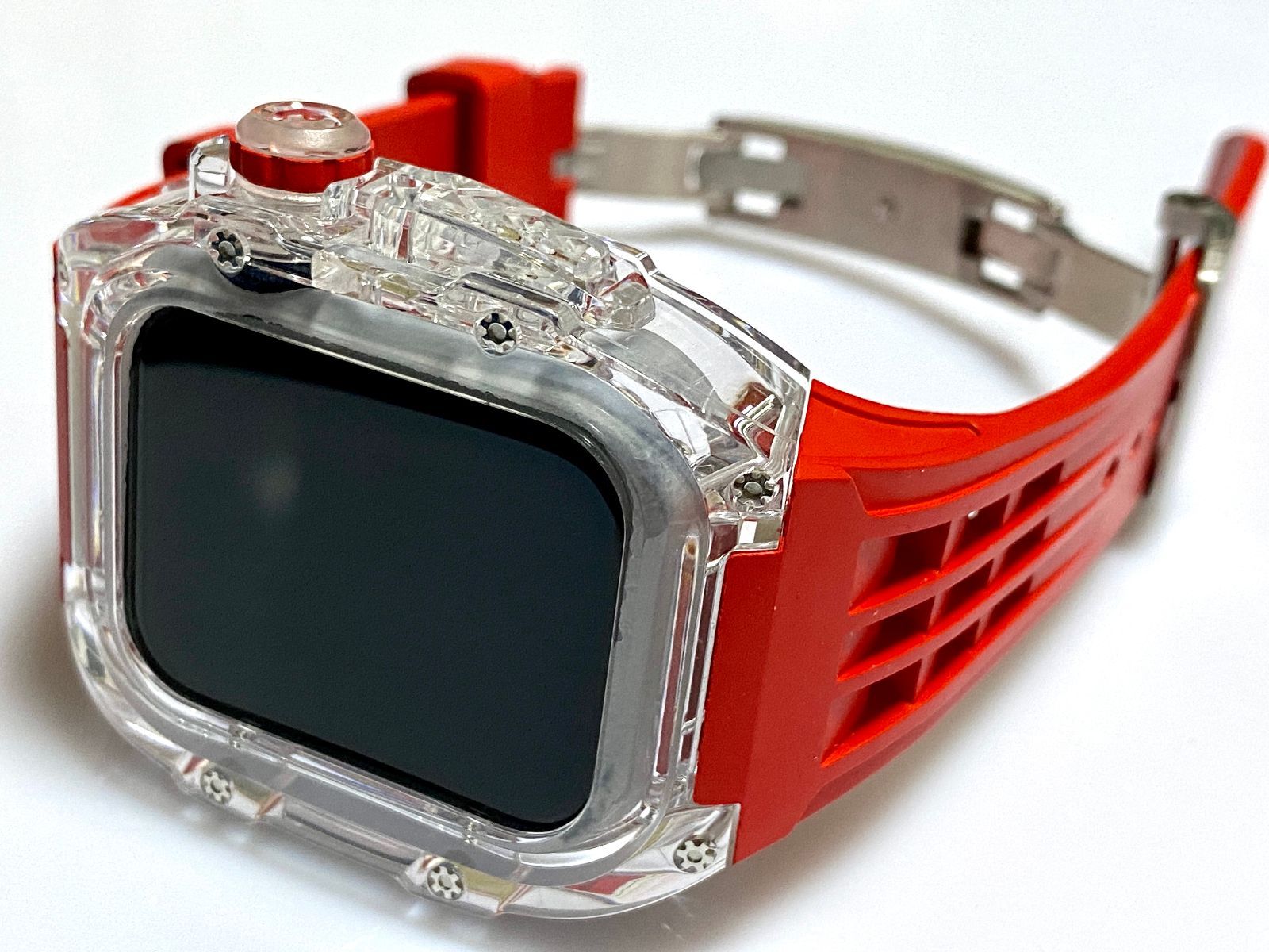 赤 アップルウォッチバンド ラバーベルト カバー キラキラ Apple Watch クリア ケース 44mm 45mm スポーツ メンズ レディース MEDICALDB_JP