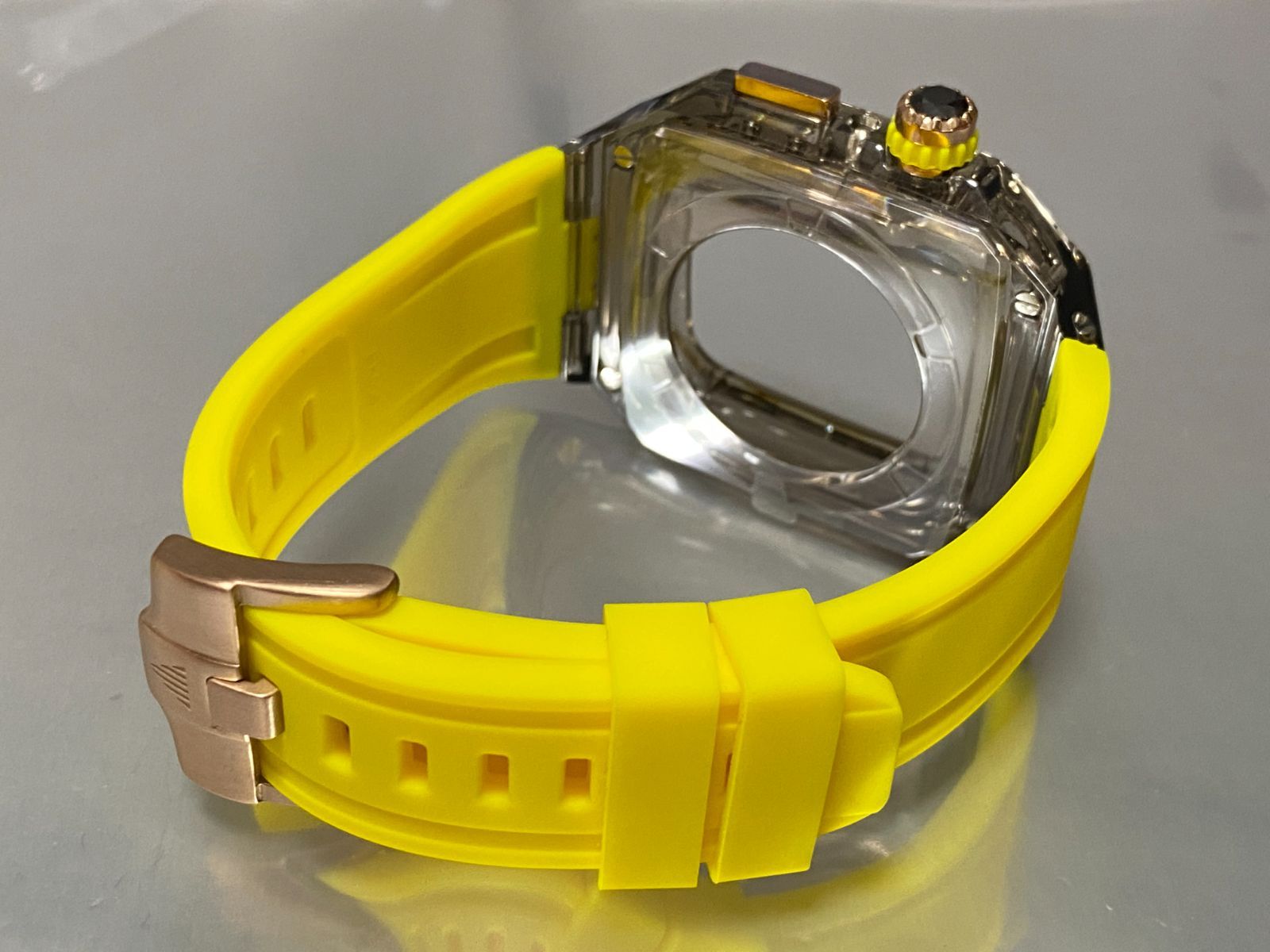 スモーク イエロー インディコ アップルウォッチ ラバーベルト カバー クリア ケース 40mm 41mm 44mm 45mm 4 5 6 7 8 se スポーツ メンズ レディース 4スクリュー Apple Watch バンド MEDICALDB_JP