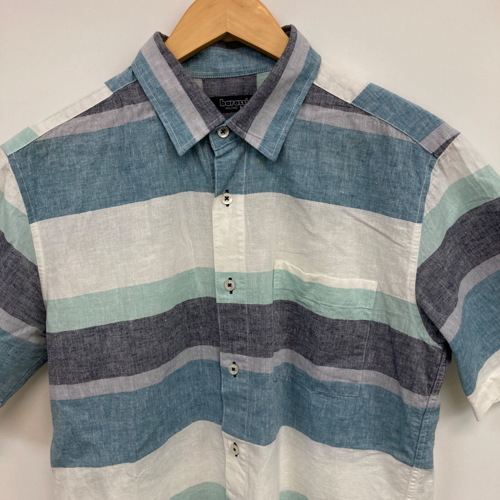 barassi バラシ トップス 半袖 シャツ ストライプ柄 ホワイト ブルー 日本製 メンズ 48サイズ CT2090の検索結果