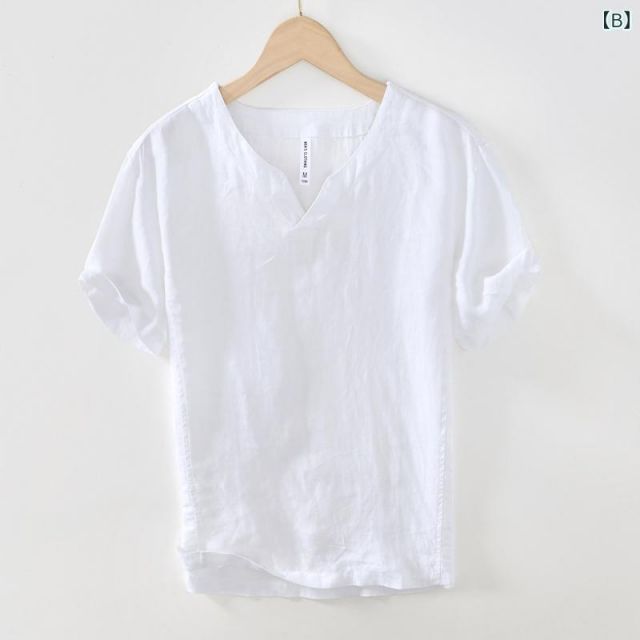 2XL メンズ ファッション 服 男性用 オシャレ シンプル 大人 かっこいい 大きいサイズ ストリート 紳士服 サマー リネン 半袖 T シャツ リネン トップス Vネック ポロ T シャツ 綿 リネン レトロ フル リネン 服 MEDICALDB_JP