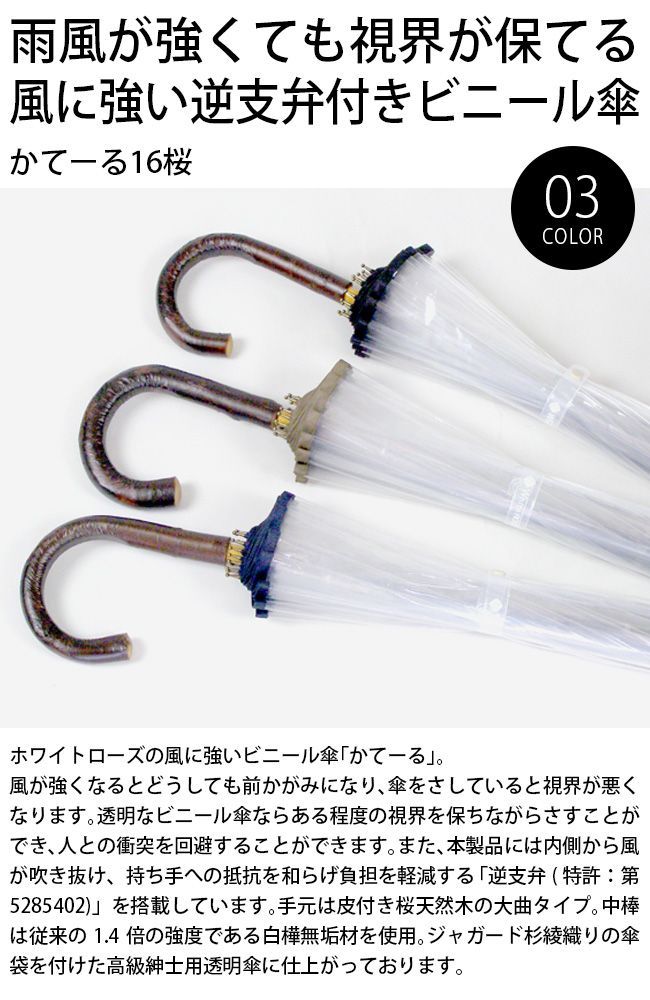 佐川急便配送 黒 かてーる16桜 透明 傘 メンズ 紳士 ホワイトローズ 大きい ビニール傘 透明傘 風に強い長傘 男性用 かさ ブランド 雨傘 丈夫 頑丈 グラスファイバー 16本骨 65cm 男性 ジャンプ傘 選挙 強風に強い MEDICALDB_JP