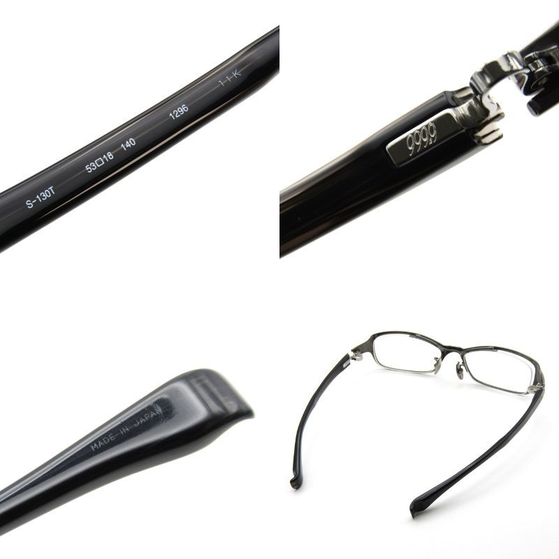 999.9 フォーナインズ メガネフレーム S-130T 日本製 11K|2011.11 1296 ガンメタリック|パラレルラインブラック 65008722 MEDICALDB_JP