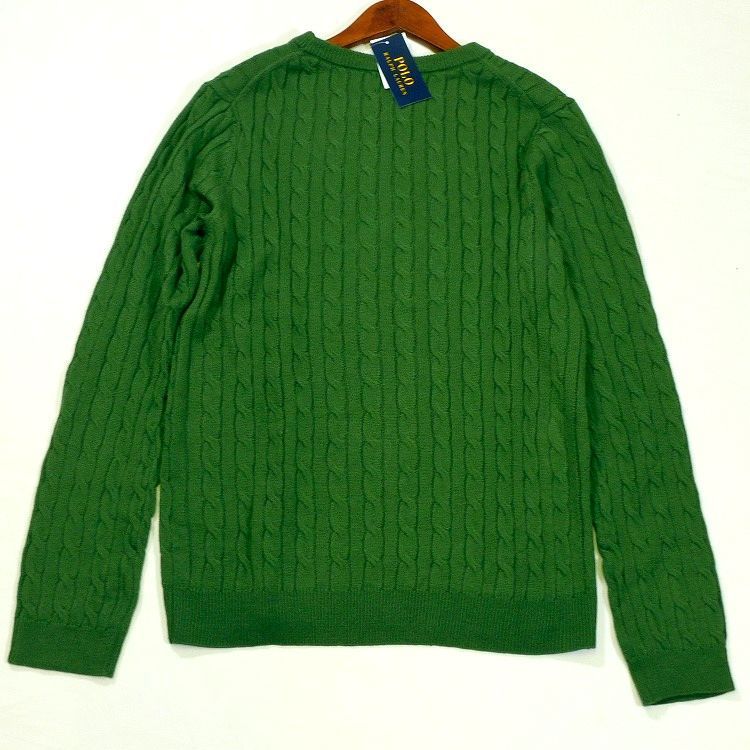 定価27 500円 ポロ ラルフローレン コットンセーター ケーブルニット XL グリーン クルーネック POLO RALPH LAUREN メンズ MEDICALDB_JP