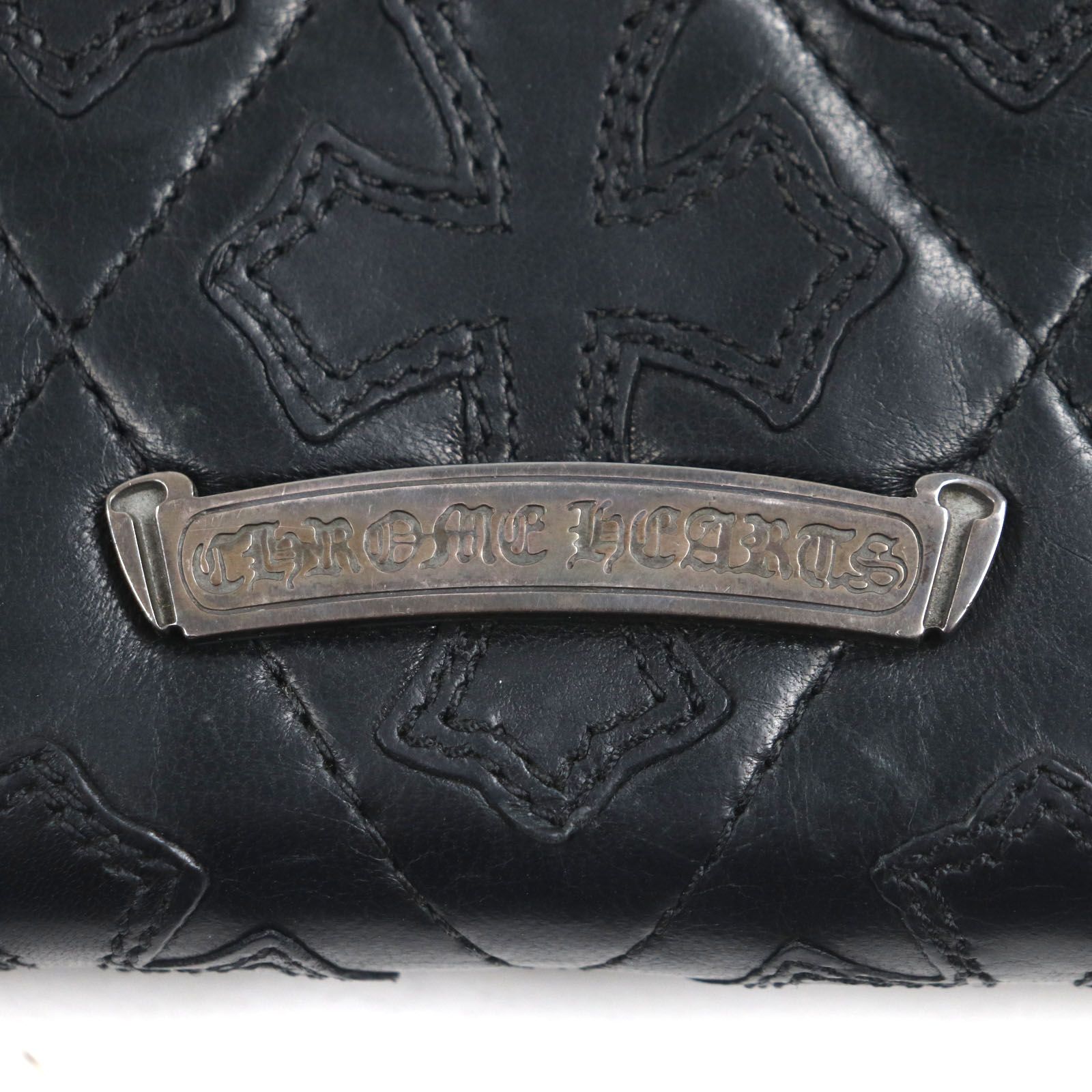 CHROME HEARTS クロムハーツ REG F ZIP レザー セメタリーキルテッドクロス ラウンドファスナー ロングウォレット 長財布 ブラック メンズ MEDICALDB_JP