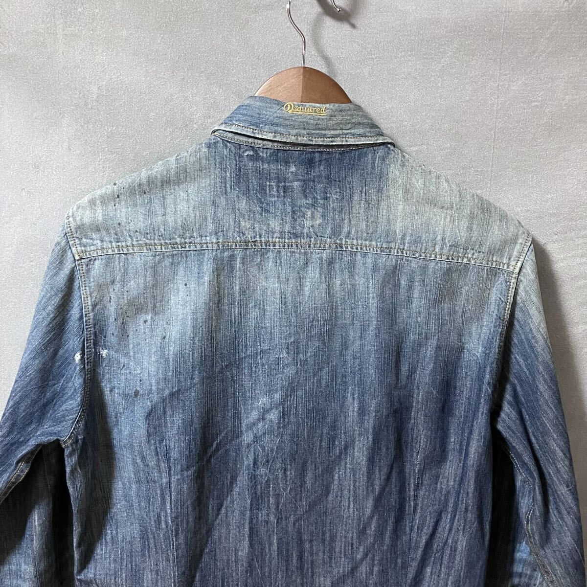 商品名:DSQUARED2 ディースクエアード アーガイル柄 デニム ブリーチ ペイント 加工 シャンブレー シャツ size.48 (M) インディゴ イタリア製