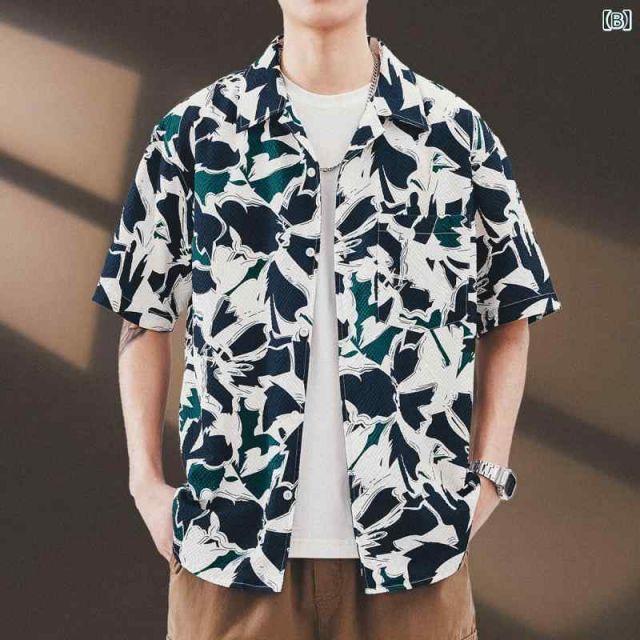 L 秋冬 コーデ メンズ 服 シンプル ファッション オシャレ 大人 かっこいい 大きいサイズ ストリート 紳士服 ハイエンド アメリカン レトロ ボタン ネック 花柄 シャツ シア サッカー ハワイアン ビーチ バカンス バケーション 半袖 カジュアル MEDICALDB_JP