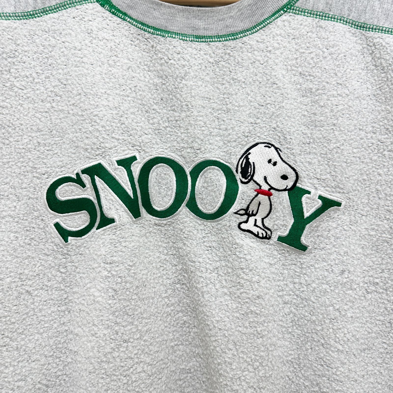 90s SNOOPY スヌーピー 刺繍スウェット ヴィンテージ オーバーサイズ ビッグシルエット ゆるダボ キャラクタースウェット XL グレー 灰色 古着 ユーズド MEDICALDB_JP