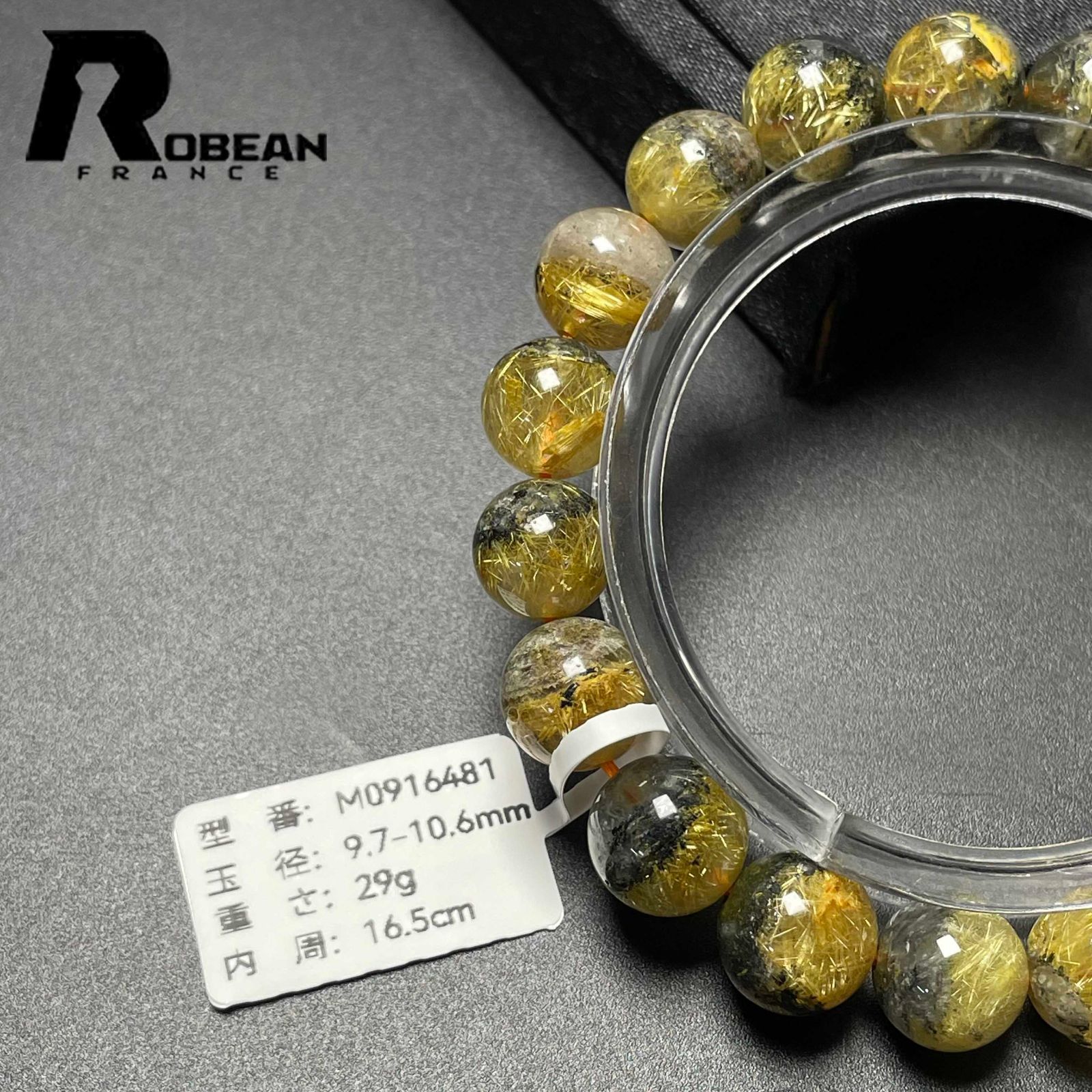 EU製 定価11万円 ROBEAN 太陽花タイチンルチル 黄金針水晶 金運 開運 ゴールド ブレスレット パワーストーン プレゼント 9.7-10.6mm M0916481 MEDICALDB_JP
