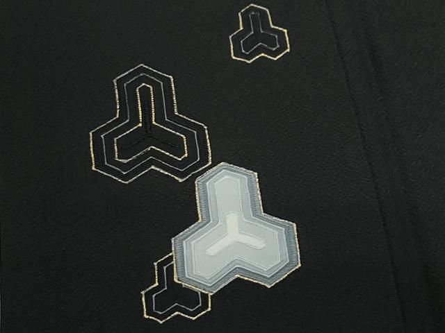 平和屋着物●男性 小紋 地紋起こし 片身替わり 毘沙門亀甲 白色×黒色 金彩 正絹 CAAY2896vf MEDICALDB_JP