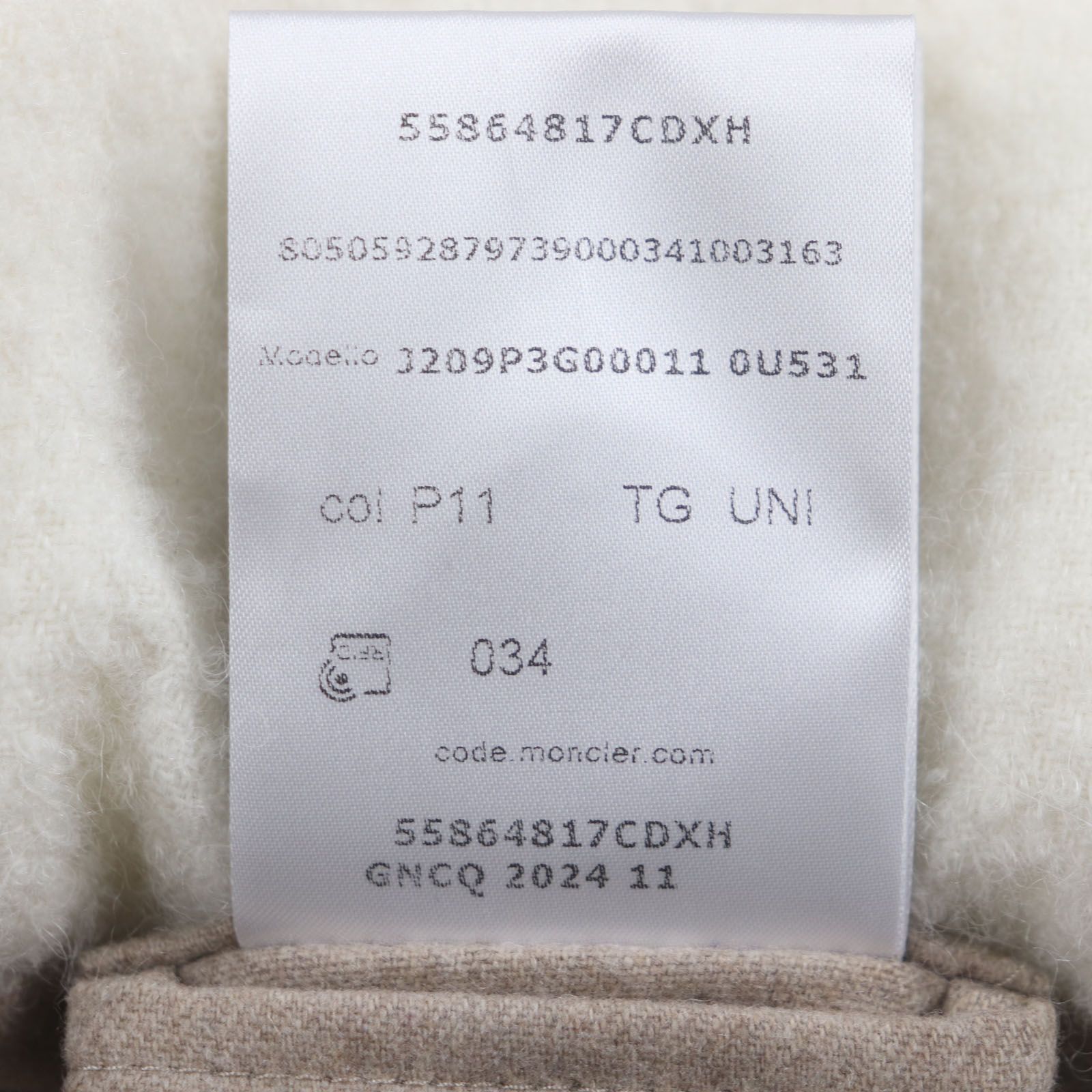 MONCLER モンクレール CRM GIFT BOUDIN BLANKET 羊毛 アルパカ アルパカ カシミヤ混 ロゴ ブランケット ホワイト グレージュ き イタリア製 正規品 メンズ MEDICALDB_JP