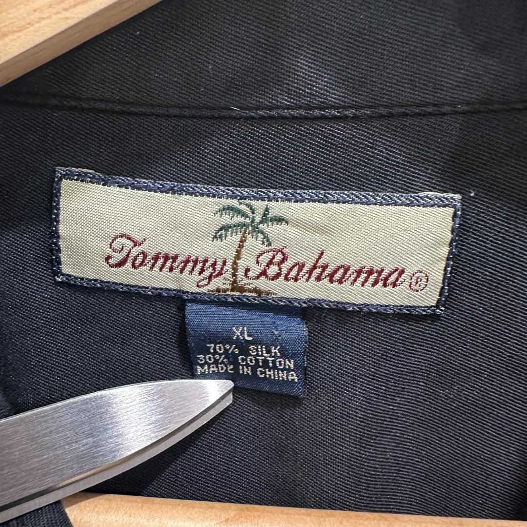 90s Tommy Bahama トミーバハマ シルクシャツ ゆるダボ オーバーサイズ ビッグシルエット シルクシャツ XL ブラック 黒 古着 ユーズド MEDICALDB_JP