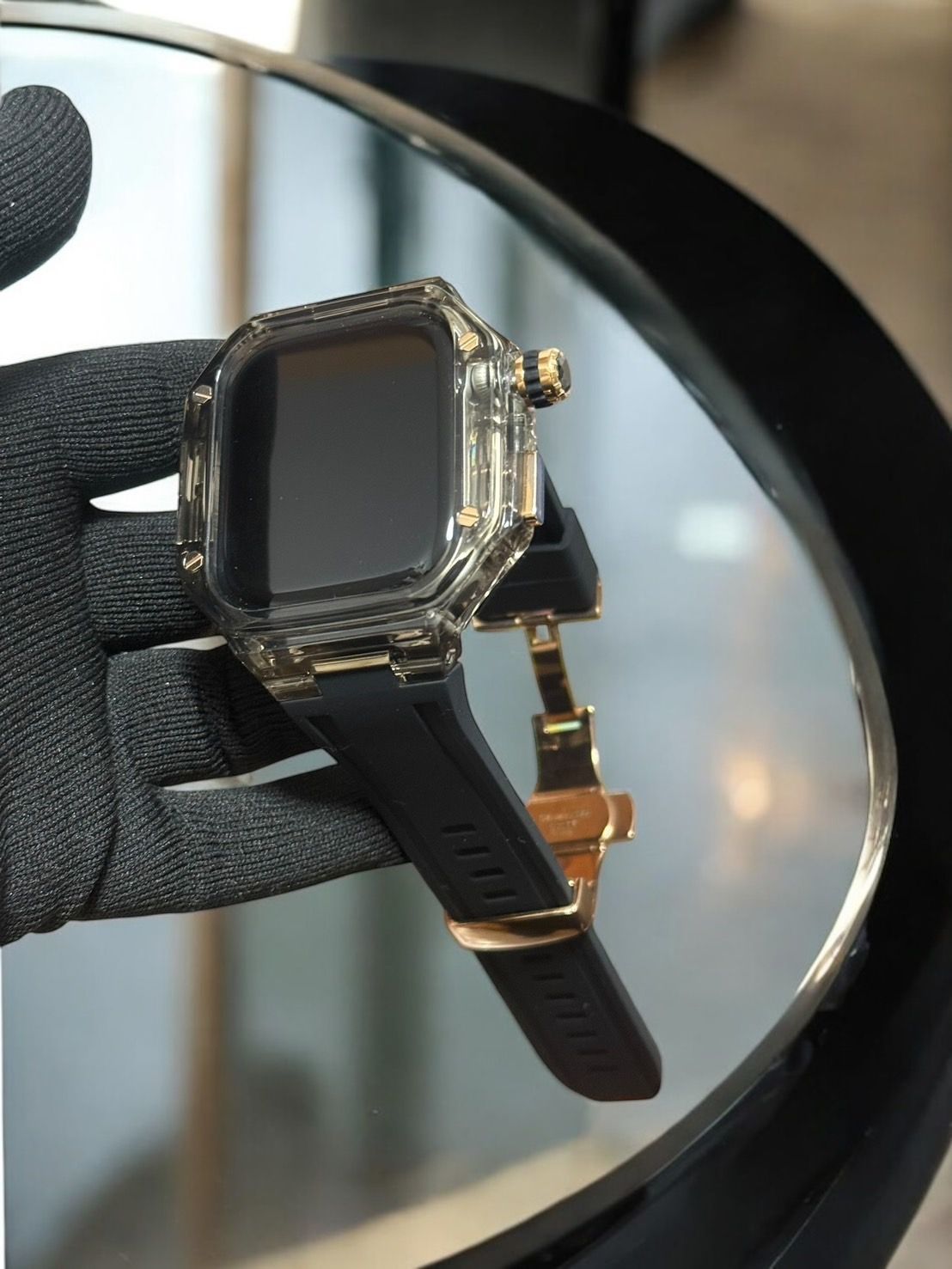 スモークブルー×ゴールドブラック 49mm apple watch ultraアップルウォッチラバーメタルカバーセット ウルトラ 49ミリ用 カスタム ultra2