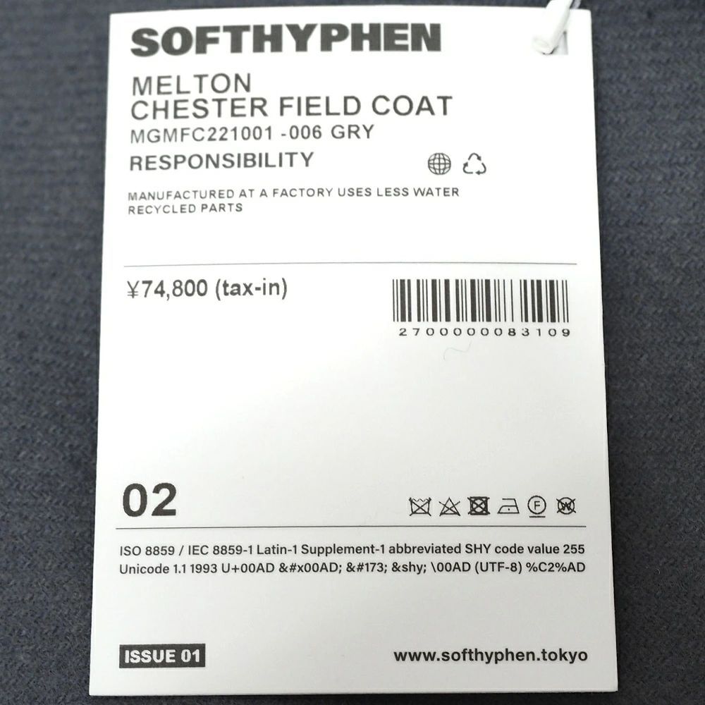 SOFTHYPHEN MELTON CHESTER FIELD COAT メルトン チェスターコート サイズ 02 グレー ソフトハイフン メンズ 5GHB|J0689S|KCT08| MEDICALDB_JP