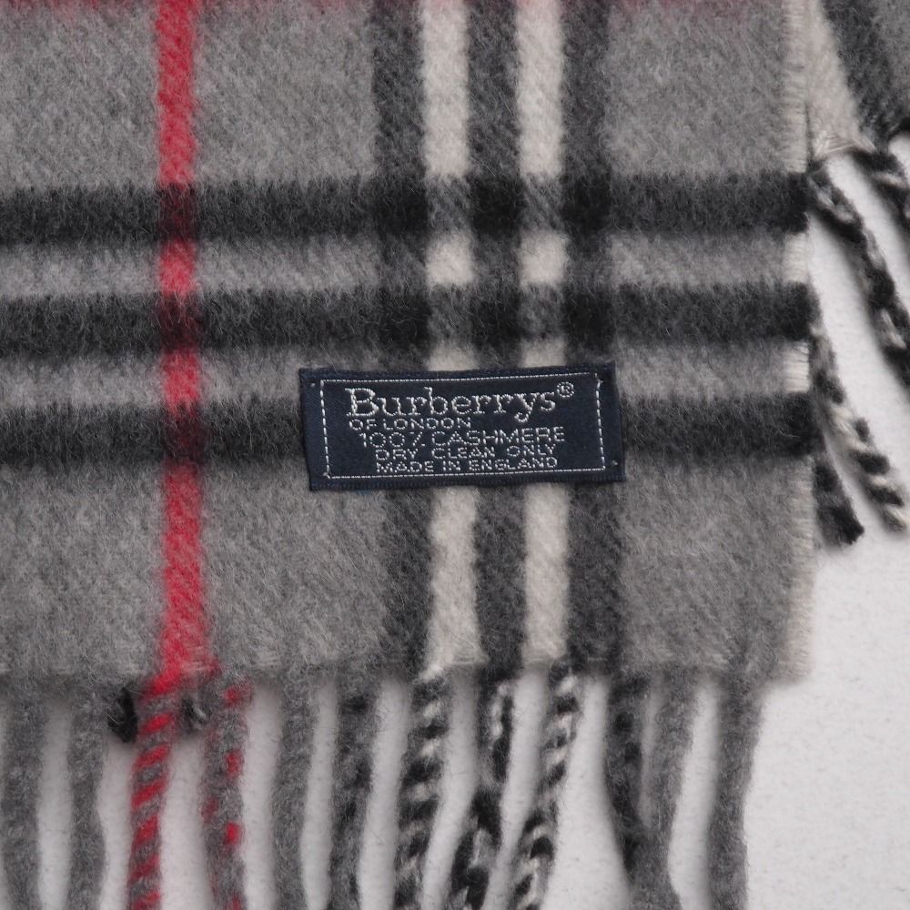 BURBERRY バーバリー マフラー 総カシミヤ ノバチェック フリンジ グレー イングランド製 ブランド古着 20250916|RA6118 MEDICALDB_JP