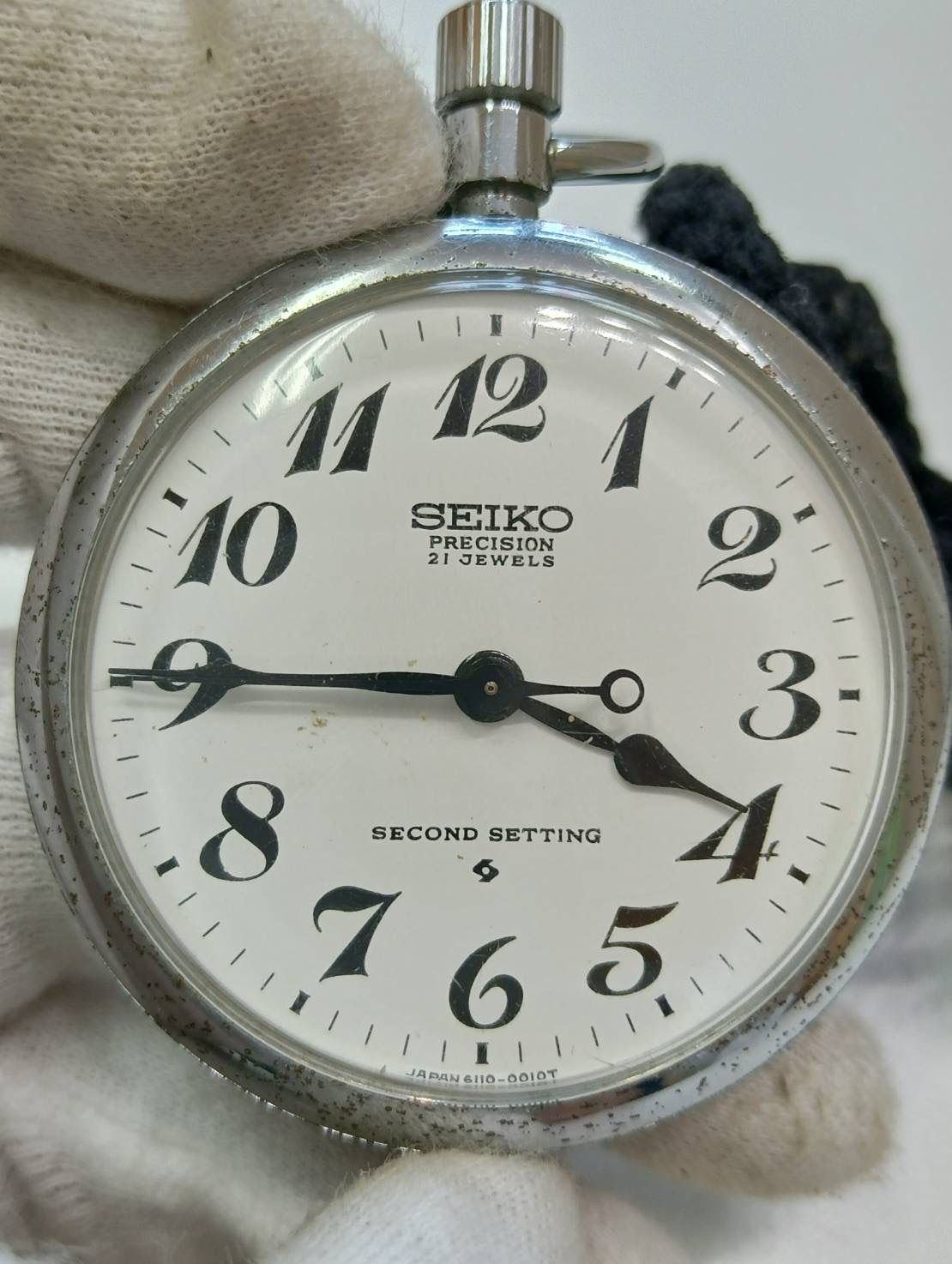 品 SEIKOセイコー PRECISIONプレジション 21 JEWELS 懐中時計 SECOND SETTING 手巻き シルバー 白文字盤 時計 現状品 MEDICALDB_JP