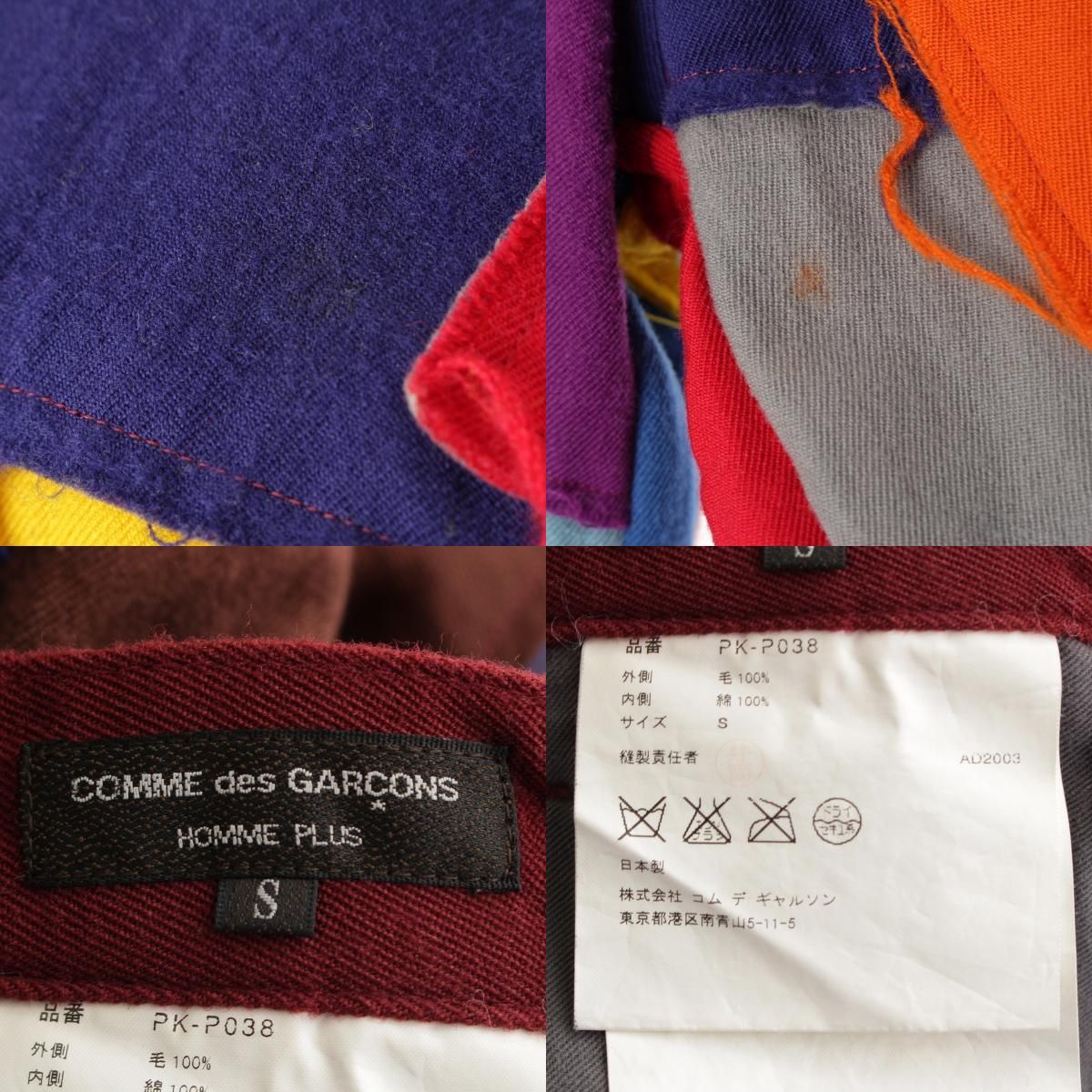 コムデギャルソン AD2003 03AW ウール コットン カーブ期 ヒップバング パッチワーク スラックス パンツ ボトムス PK-P038 マルチカラー S MEDICALDB_JP