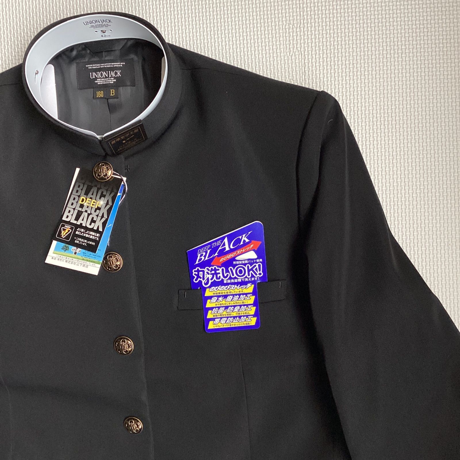 男子 学生服 160B 襟カラー 1808 学生 学ラン 詰襟 ♥品 標準型 ポリエステル80% 毛20% UNIONJACK DEEPBLACK MEDICALDB_JP