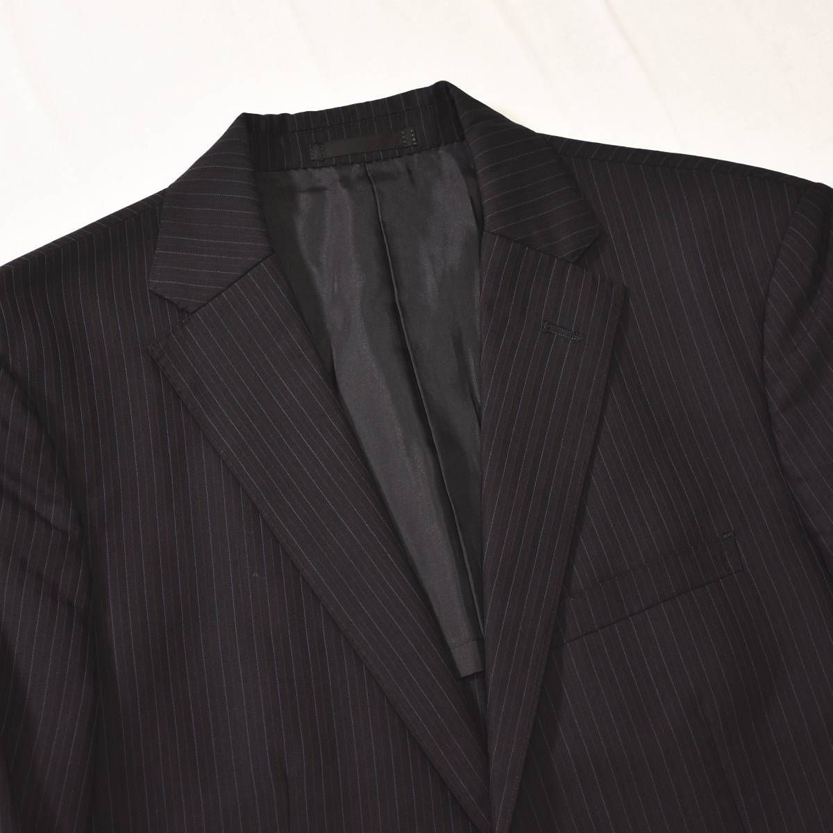 ディオールオム Dior HOMME エディスリマン期 04SS STRIP期 セットアップ スーツ ストライプ ウール テーラードジャケット パンツ 背抜き 46 R 黒 ブラック 0924