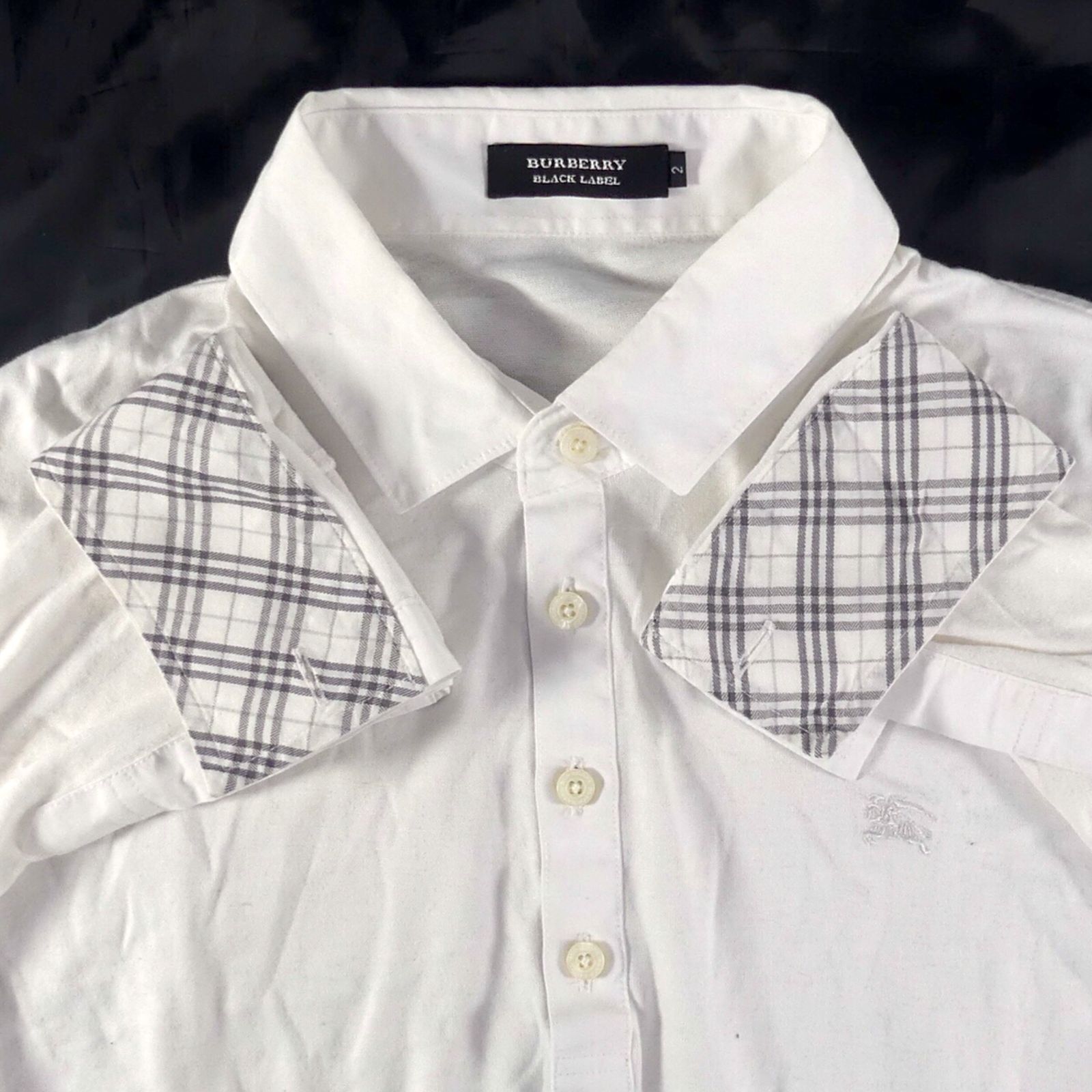 BURBERRY BLACK LABEL 廃盤 バーバリーブラックレーベル ポロシャツ M 長袖シャツ 古着 メンズ 2 チェック 刺繍 白 日本製 ホワイト 長袖 シャツ ポロシャツサイズM一覧←SEULB屋着古← TY3995 MEDICALDB_JP