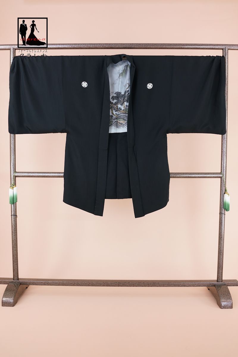 フォーマル衣装 適応身長 180cm前後 家紋 丸に違鷹ノ羽 家紋 丸に違い鷹ノ羽 角帯 羽織紐 末広 草履 長襦袢 男袴 着物 羽織 紋服 8点セット 7号 cl_kimono2614 品 クラレナの検索結果