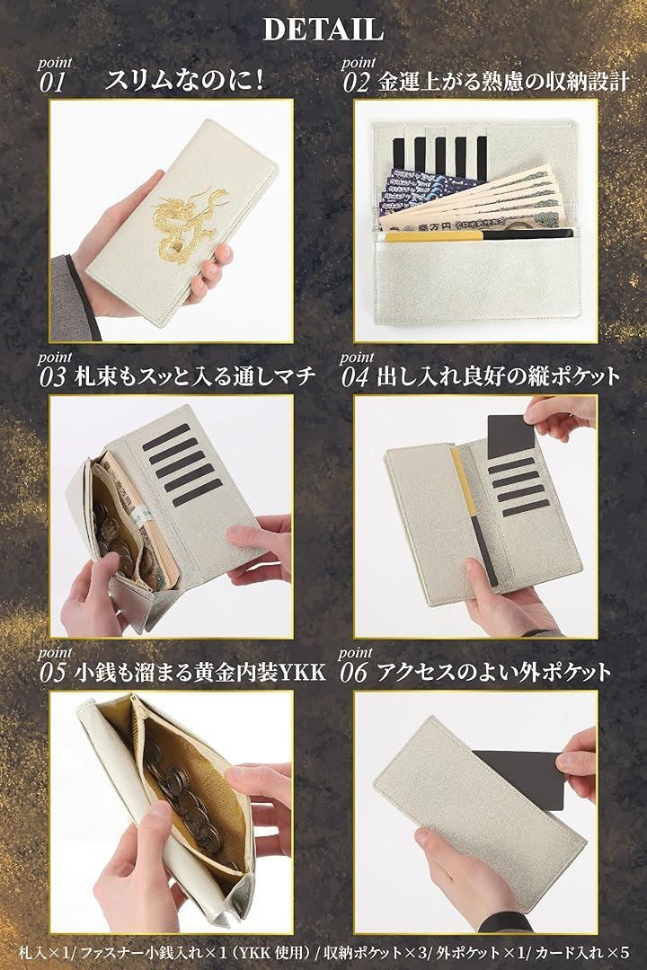 SakuraZen 風水 皇帝龍 長財布 金運アップ 日本製 本革 本金箔刻印 牛革 黄金 竜 メンズ YKK製ジッパー使用 シャンパンゴールド 本体のみの検索結果