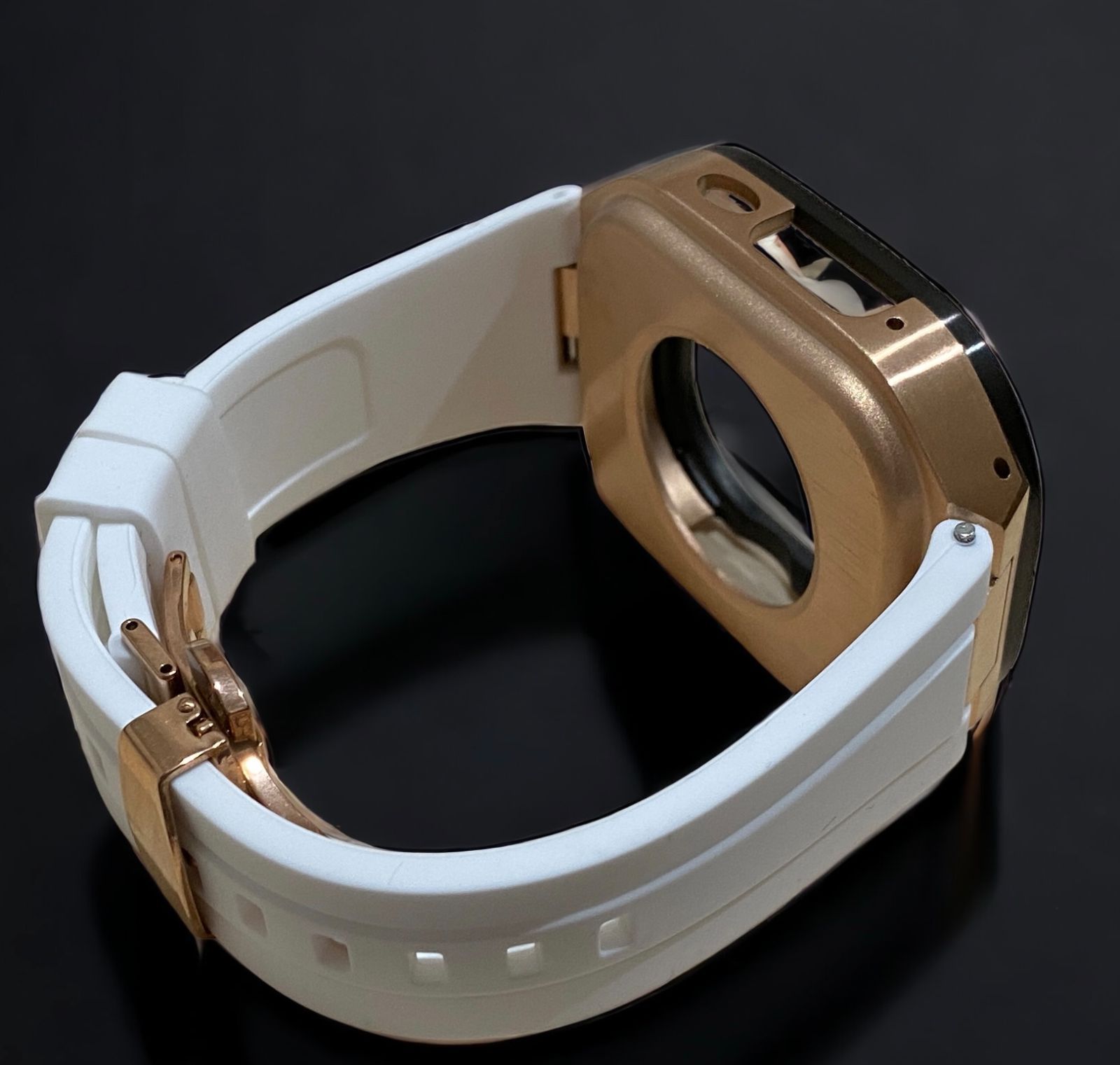 ホワイト×ローズブラック 49mm apple watch ultraアップルウォッチラバーメタルカバーセット ウルトラ 49ミリ用 カスタム ultra2 MEDICALDB_JP