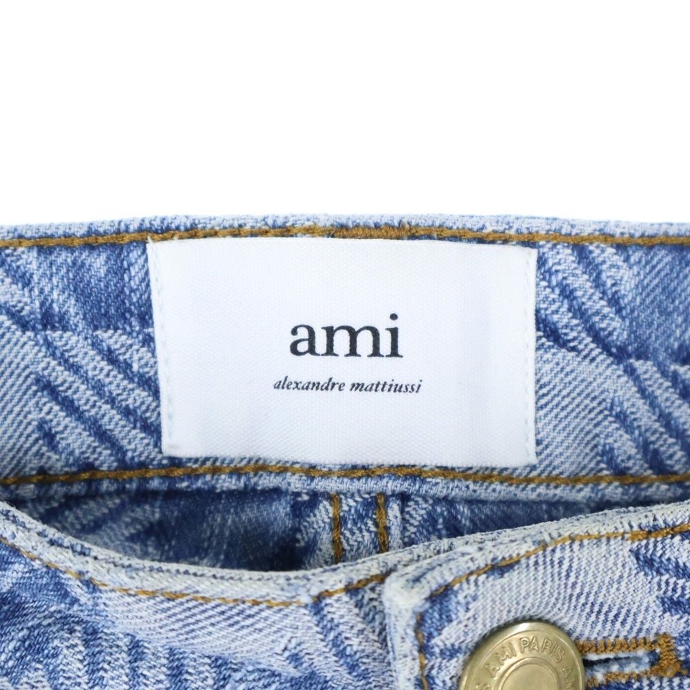 AMI Alexandre Mattiussi アミアレクサンドルマテュッシ カウレザーパッチ チェック柄 ボタンフライデニムショーツ ハーフパンツ インディゴ HS0600.DE0010 MEDICALDB_JP