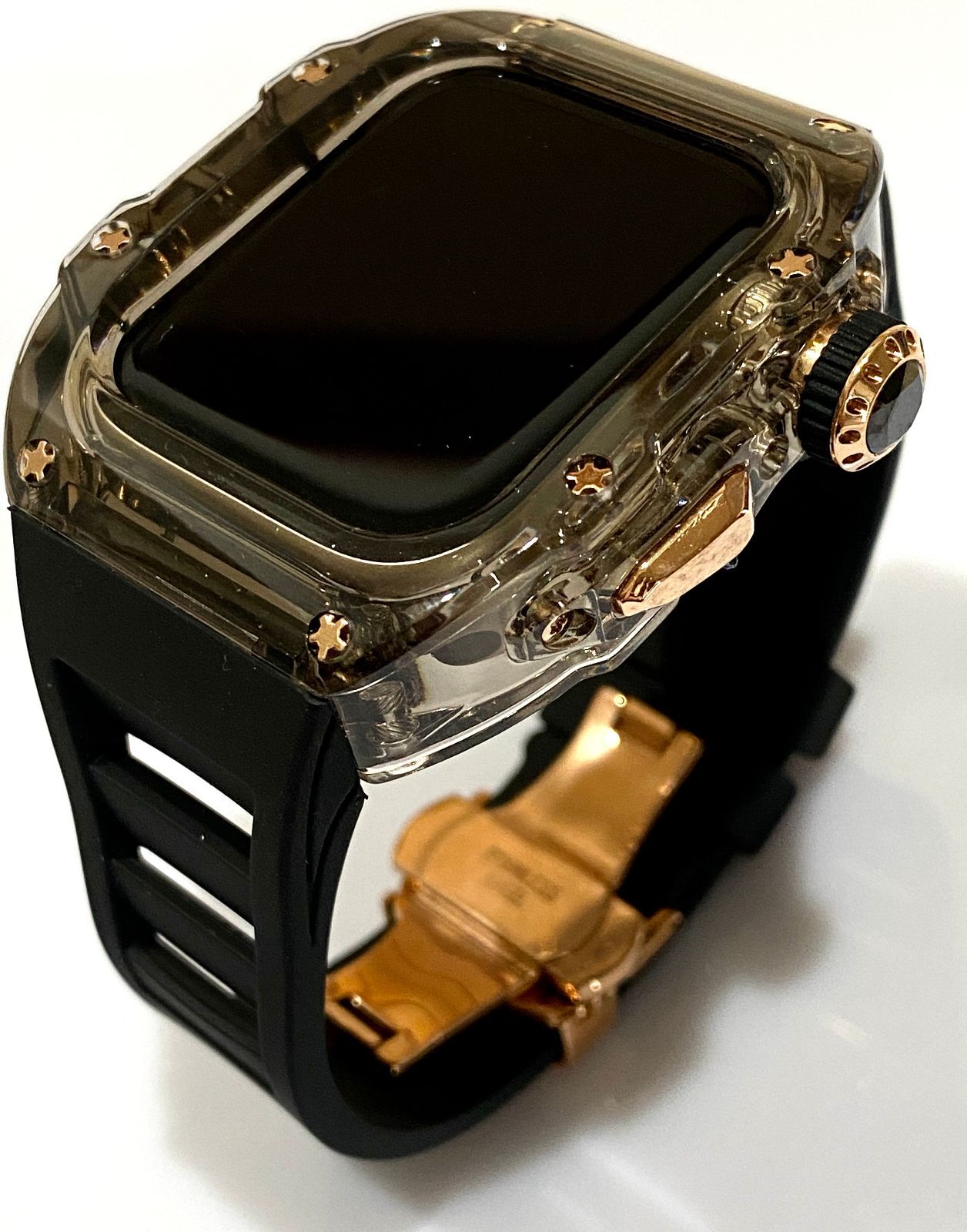 ローズゴールド アップルウォッチバンド ラバーベルト ステンレス カバー Apple Watch ケース 44mm 45mm 4 5 6 7 8 9 se メンズ レディース スポーツ Dバックルブラックモデル