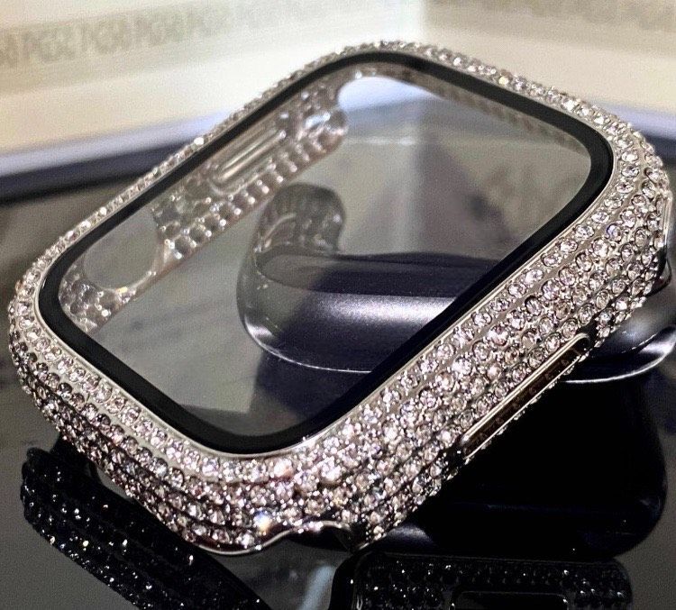 シルバー Apple Watchバンド ステンレスベルト アップルウォッチ画面保護カバー パヴェglassケース キラキラ クリスタル 40mm41mm44mm45mm49mm ultra ウルトラ series10 42mm 46mm