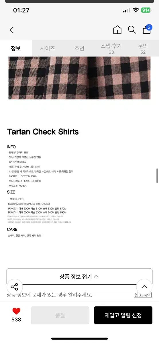 NOUN ナウン タータン チェック シャツ ピンク 2 サイズの検索結果
