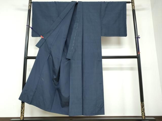 平和屋着物●男性 紬 アンサンブル 色無地 濃藍色 正絹 AABA5070np
