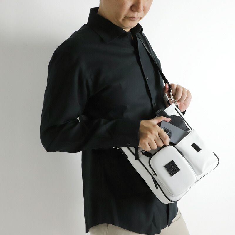 フジタカ FT by FUJITAKA レザー ショルダーバッグ メンズ ホワイト 白 日本製 定価22 000円 牛革 小型 薄型 コンパクト ギフト プレゼント ボディバッグ ワンショルダーバッグ